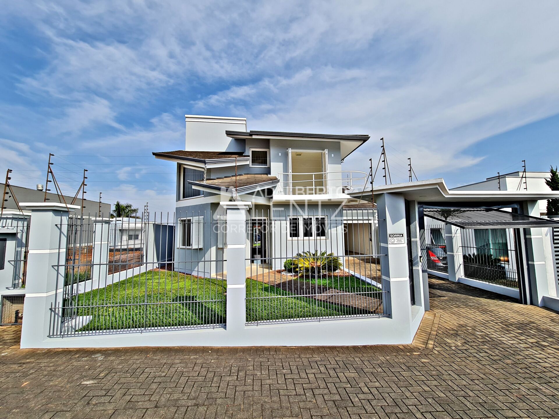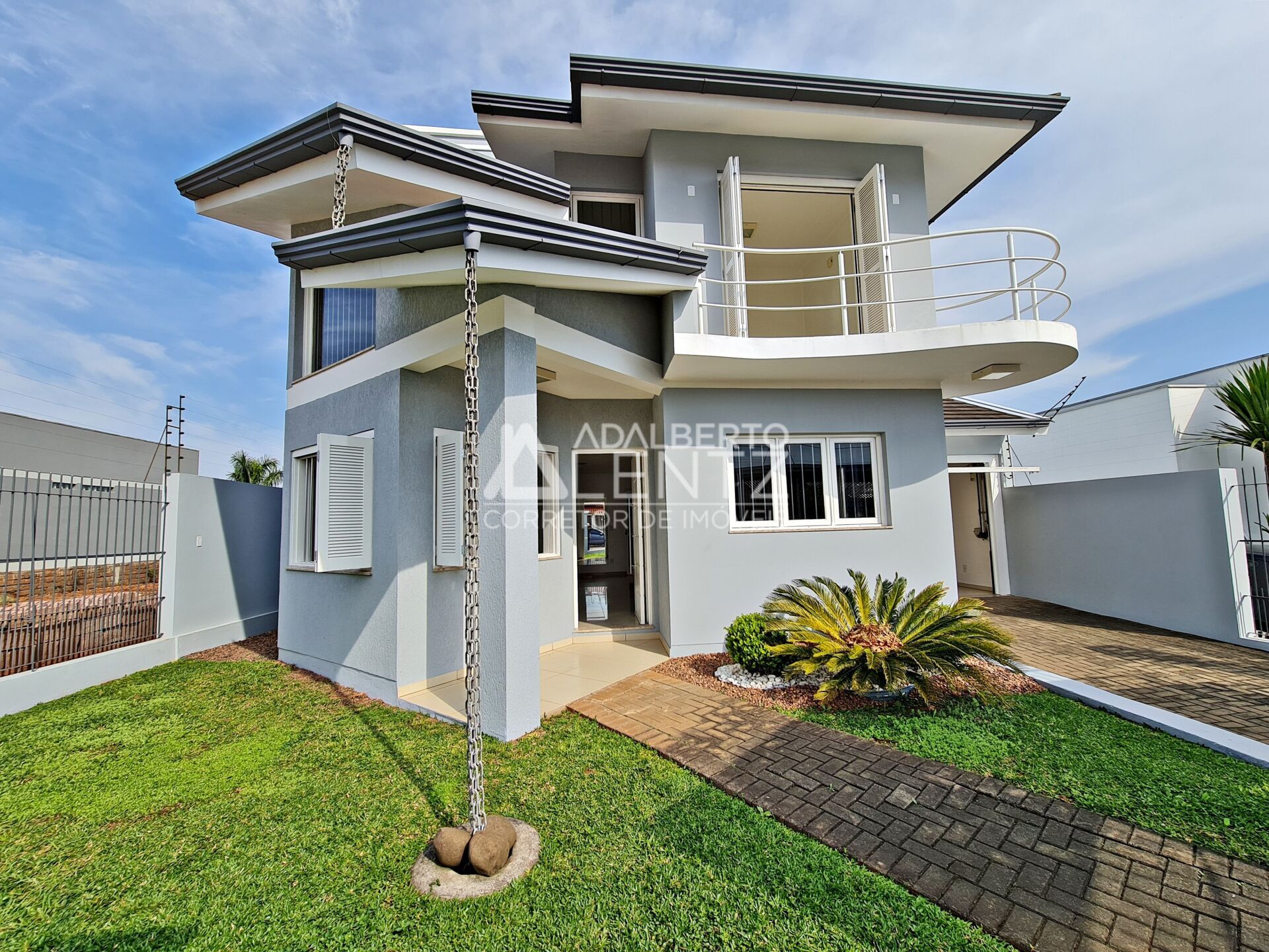 Adalberto Lentz Imóveis Vende Casa no bairro Solar do Campo em Campo Bom com 3 dormitórios sendo 1 suíte, 2 pavimentos, cozinha americana com móveis sob medida, sala de jantar/estar integradas, churrasqueira, 2 banheiros sociais, lavanderia, área privativa de 157 m² em alvenaria, terreno medindo 12 x 25 metros com amplo pátio nos fundos com espaço para piscina ou quiosque, 2 vagas de garagem cobertas, frente norte, poço artesiano, alarme.